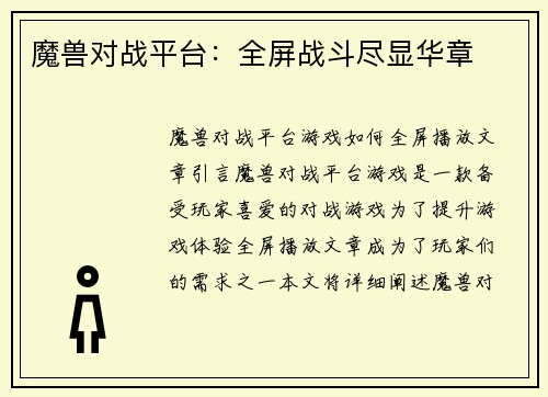 魔兽如何能够全屏播放声音 魔兽世界(World of Warcraft)是一款备受玩家喜爱的大型多人在线角色扮演游戏。在游戏中,声音是重要的元素之一,能够增强玩家的游戏体验。有时候玩家可能会遇到魔兽无...
